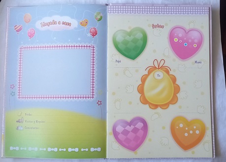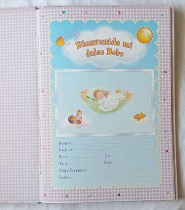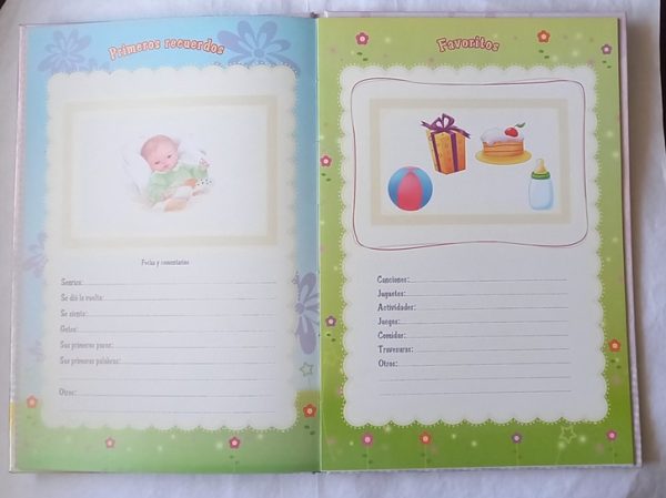 Álbum de fotos de Nacimiento y Bautizo de la Editorial Colorama Perú 🇵🇪 tapa dura, 9 hojas con dibujos a colores, papel couche. Presenta espacio para poner datos del Nacimiento y Bautizo del bebé, foto, huellas de manos y pies, ecografía, regalos, recuerdos, vacunación, tallas de crecimiento, etc. Viene en caja.