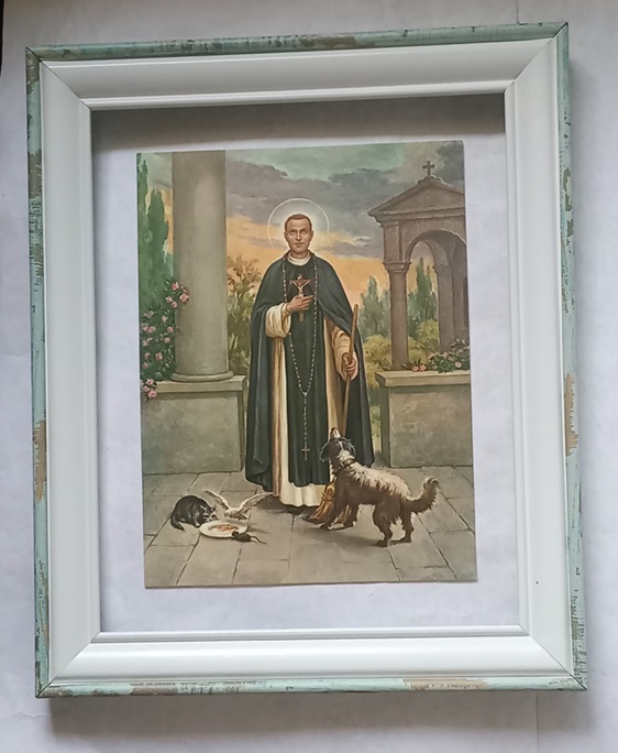 Cuadro nacional 🇵🇪 con imagen italiana 🇮🇹 de San Martín de Porres, para pared y/o mesa. Con paspartú.