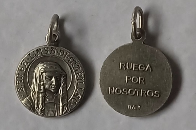 Medalla 🇮🇹 italiana redonda sin filo con la imagen de Santa Luisa de Marillac en metal alpaca o también llamada plata alemana. Viene en caja.