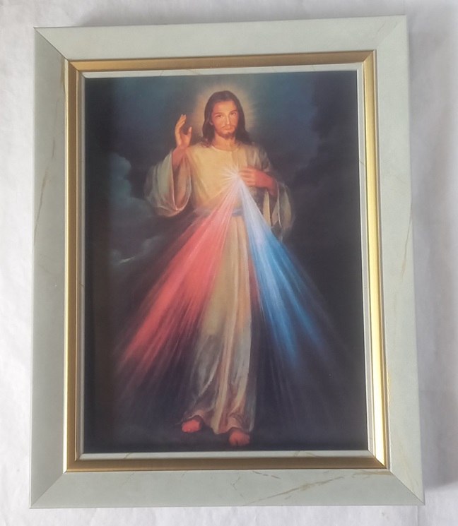 Cuadro nacional 🇵🇪 con imagen italiana 🇮🇹 delSeñor de la Misericordia con soporte para mesa y vidrio simple.