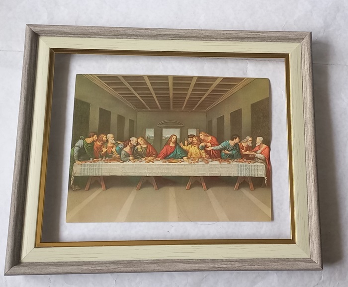 Cuadro nacional 🇵🇪 con imagen italiana 🇮🇹 de la Ultima Cena reproducción de la pintura de Leonardo Da Vinci, para pared y/o mesa. Con paspartú. Viene en caja.