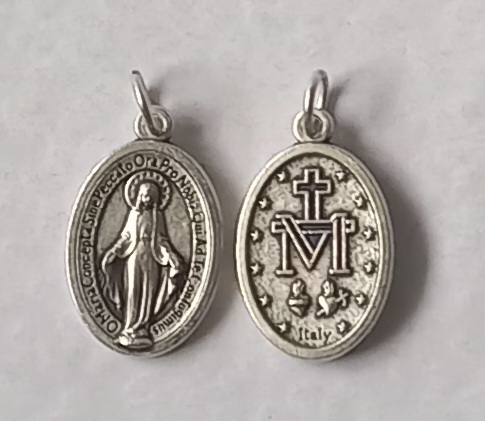 Medalla italiana 🇮🇹 oval con filo de alpaca con la imagen de la Virgen Milagrosa y en el reverso aparece la M de Maria y las 12 estrellas.